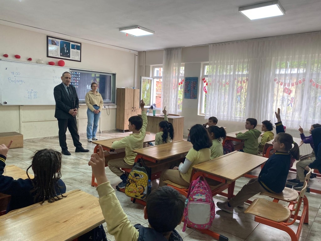 İlçe Milli Eğitim Müdürümüz Sayın Bayram BAKIR, okulumuzu ziyaret etti. Milli Eğitim Müdürümüzün ziyaretine Şube Müdürümüz Hayrettin KAHYA , Özel Büro’dan Hail SOYER ve Sümeyye SAV eşlik ettiler. Öğrenciler ile sohbet ederek öğrencilerin isteklerini dinleyen Sayın Bayram BAKIR; LGS sınavı için moral ve motivasyon ve yapılması gerekenler hakkında öğrencilere bilgiler sundu. Öğretmenlerle de bir süre sohbet etti ve idarecilerden eğitim süreçleriyle ilgili bilgi aldı.